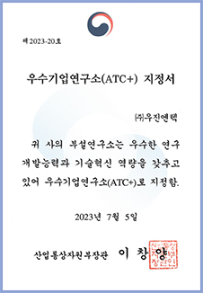우수기업연구소(ATC+) 지정서
